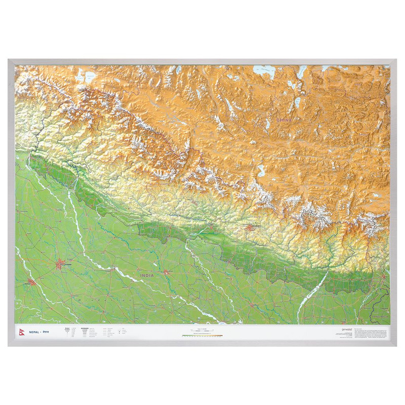 Globos e mapas > Mapas > Regiões > Europa > Outros países > Georelief > Georelief Mapa regional Nepal groß 3D mit Aluminiumrahmen