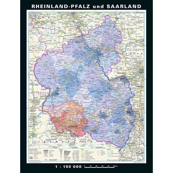 > PONS Mapa regional Renânia-Palatinado e Sarre fisicamente e politicamente (148 x 193 cm)