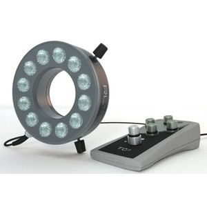A luz anelar LED de alta potência RL12, extremamente potente e versátil, foi desenvolvida para diversas aplicações em microscópios, produção e processamento industrial de imagens. Os 12 LEDs de alta potência da luz anelar, alojados numa caixa metálica compacta, têm uma longa vida útil e destacam-se pela sua forte intensidade luminosa. A luz anelar LED RL12 está disponível em várias versões, permitindo que cada utilizador encontre a iluminação adequada em termos de luminosidade, distância de trabalho, cor da luz e ótica. A construção modular permite a troca dos módulos LED na fábrica. Com a ajuda de diversos acessórios, a luz anelar pode ser adaptada a necessidades e exigências individuais. Por exemplo, existe um filtro de polarização e vários anéis redutores para ajustar o diâmetro interno, o que permite que a luz anelar LED seja montada em diversos instrumentos, como câmeras ou microscópios.