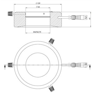 As séries RL4 e RL5 foram concebidas principalmente como iluminação de luz incidente para microscópios. A área de trabalho das luzes anelares foi selecionada de forma que o foco fique na distância típica entre a lente e a platina del microscopio dos microscópios padrão. Ambas as séries estão disponíveis com dois diâmetros internos, o que garante que haja um modelo adequado para todos os tipos de microscópios comuns.