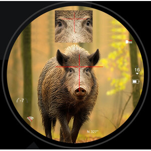 Para além das funções habituais, como o armazenamento de vídeo e imagens, existe também uma função inteligente de deteção de recuo. Esta função é activada quando é disparado um tiro e guarda automaticamente 10 segundos antes e depois. Existe também uma prática função picture-in-picture. Além disso, o Pard FD1 LRF tem agora também um medidor de distância a laser com o qual pode determinar com precisão a distância até ao alvo até uma distância de 1000 metros.