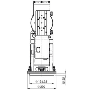 - Devido ao design azimutal, é necessário um rotador de campo de imagem para astrofotografia. Com um rotador de campo de imagem (por exemplo, da PlaneWave IR90 ou da Gemini Optec), a astrofotografia "clássica" também é possível com a habitual precisão de 10 microns.