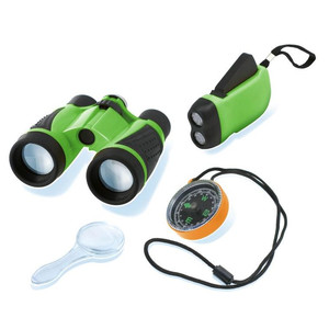 Um conjunto de observação com bússola, binóculos, lupa e lanterna!