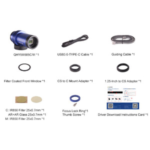 Câmara planetária e autoguiadora de nova geração: a IMX585 é um processador Sony Starvis II que permite alta sensibilidade e alta gama dinâmica (HDR). Além disso, melhora a sensibilidade na faixa do infravermelho próximo em cerca de 1,7 vezes em comparação com o IMX485. A nova câmera QHY5III585M/C possui uma grande capacidade fullwell de mais de 30 ke, cerca de três vezes mais do que a geração anterior QHY5III485C.