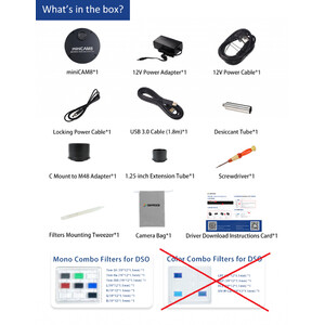 A miniCAM8 é baseada no sensor IMX585 de 8 MP da Sony e possui refrigeração termoelétrica completa, que pode atingir um delta de -45 °C em relação à temperatura ambiente, bem como uma roda de filtro integrada de 8 posições para imagens LRGB e de banda estreita.