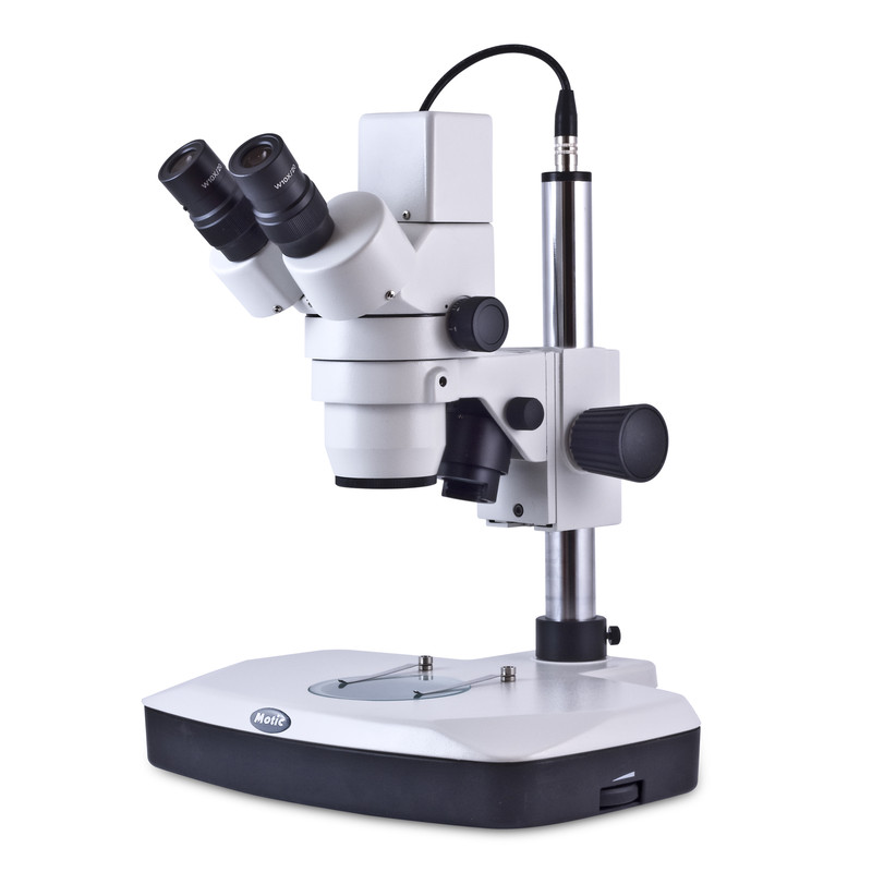 Um microscópio estéreo simples para uso em escolas e universidades. O sistema óptico Greenough fornece imagens de alta qualidade com um zoom perfocal 4:1 e uma ampliação padrão de 10x-40x. A câmera USB integrada de 5 MP com o software Motic Images 3.0 incluído é a base de uma estação de documentação educativa para alunos e estudantes.