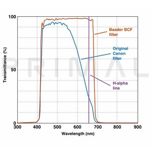 A conversão (astromodificação) é realizada pela empresa PrimaLuceLab na itália, substituindo o filtro original da Canon pelo Filter da Baader Planetário, que foi especialmente desenvolvido para este fim na alemanha. Pode ver a diferença na ilustração "Curva de transmissão".