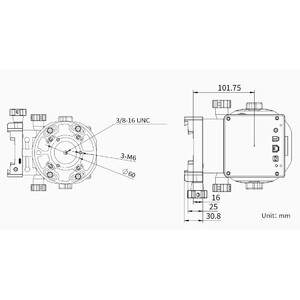 - A base da montagem permite a utilização de trilhos prismáticos de acordo com os padrões Vixen ou Losmandy. Assim, praticamente qualquer telescópio pode ser montado.