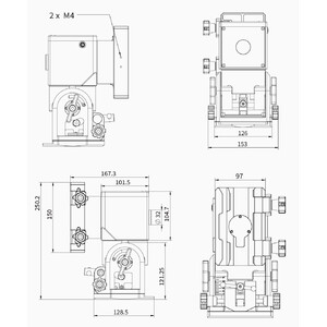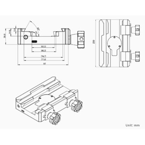 - A base da montagem permite a utilização de trilhos prismáticos de acordo com os padrões Vixen ou Losmandy. Assim, praticamente qualquer telescópio pode ser montado.