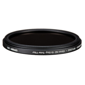 Este filtro solar de densidade neutra da Tiffen, em edição especial para o 50.º aniversário, é um filtro de alta qualidade com um fator de filtragem de 262.144x, que reduz a exposição em 18 pontos de abertura. A sua densidade de 5,4 escurece toda a imagem, permitindo fotografias com uma abertura maior ou um tempo de exposição mais longo, reduzindo simultaneamente o risco de sobre-exposição. Isto permite-lhe obter fotografias do sol com mais detalhes do que em condições normais.
