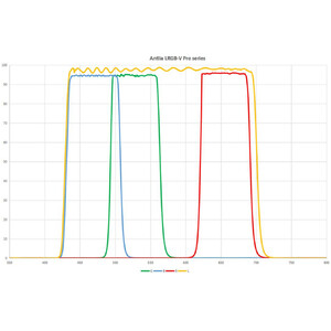 Quatro filtros para uma imagem a cores: Com o conjunto de filtros LRGB você fotografa o céu em cores com chip monocromático. Câmeras CCD astronômicas monocromáticas registram objetos do céu profundo em uma resolução muito alta, isto porque todos os pixels do chip se juntam para uma foto. No chip CCD em cores, no entanto, a resolução é minimizada, pois metade dos pixels são equipadas com filtros de cor.