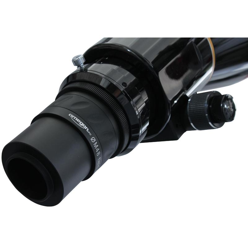 A lente vem com rosca tipo M48 de cada lado. A grande vantagem deste desenho é que permite uma iluminação total, esta é a diferença das roscas T2 ou M42, que limitariam os raios de luz. Esta é a razão porque os telescópios com focadores de 2" têm uma iluminação pior.