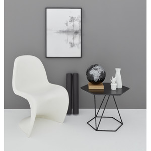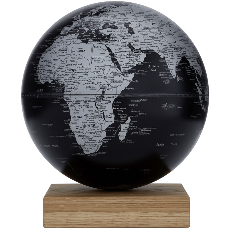 Já no século IV a.C., o filósofo grego Platon se dedicava à forma ideal da Terra. O globo da jovem designer Louise Onken apresenta-se igualmente perfeito. O globo terrestre é fixado por ímanes numa base maciça de madeira de carvalho (180 x 180 x 40 mm), podendo ser girado à vontade e facilmente removido.
