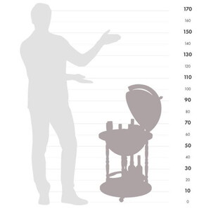 Correspondendo ao nobre design da cartografia, o globo terrestre tem elegantes pernas em madeira de nogueira. Garrafas adicionais podem ser armazenadas na prateleira inferior, que é adornada com tons naturais à base de água.