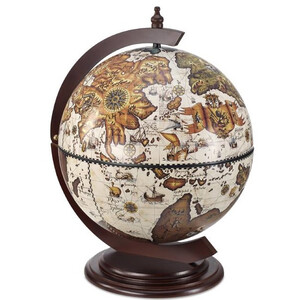 Globo de mesa vintage com base em madeira com aspecto antigo e mapa clássico em cor marfim. O globo Sfera 42, com as suas maravilhosas ilustrações de monstros marinhos, sereias e figuras mitológicas, possui no interior um compartimento para 2-3 garrafas baixas e cerca de 9 copos.