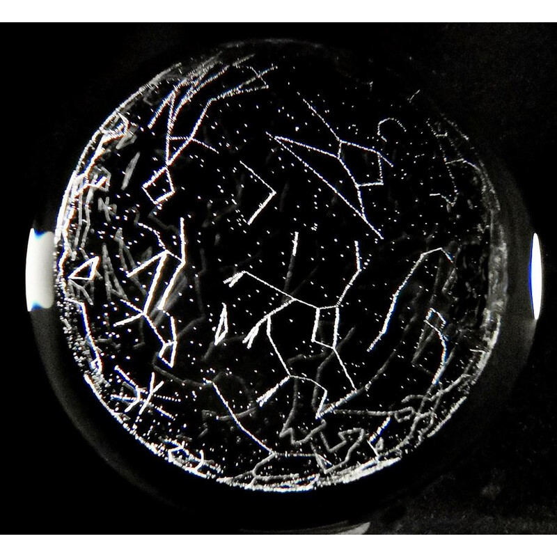 Um produto de elevada qualidade: esta esfera é feita de vidro borossilicatado sólido, no qual um laser gravou pontos muito precisos, que juntos formam um padrão espacial. Na gravação a laser, a luz incidente é maravilhosamente refletida na sua cor.