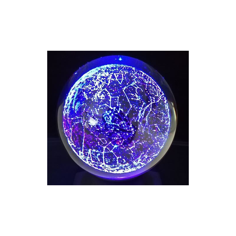 Esta bola de vidro está disponível nas versões 2D e 3D. Na versão 3D, as distâncias das estrelas à Terra são representadas numa escala logarítmica. A versão 2D mostra as estrelas projetadas de forma clássica numa esfera celeste.