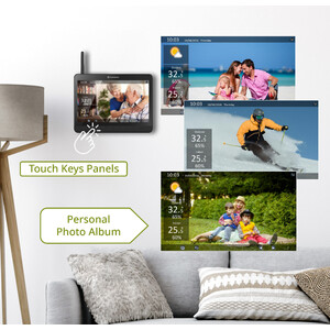 O que torna esta estação meteorológica digital com pluviómetro tão especial? A função de moldura fotográfica transforma o ecrã meteorológico numa galeria pessoal! Através da aplicação correspondente, as fotografias podem ser transferidas diretamente para o ecrã da estação base. A apresentação de slides automática alterna entre belas imagens, enquanto exibe simultaneamente dados meteorológicos importantes.