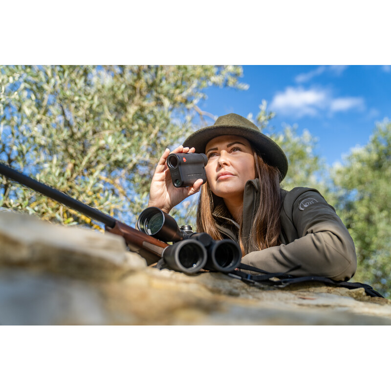 Mesmo quando cada grama conta, como em uma viagem de caça ou na montanha, o medidor de distância Leica Rangemaster CRF R é o companheiro perfeito, pois o instrumento é pequeno e extremamente leve, pesando apenas cerca de 180 gramas. Guardado no bolso das calças ou do casaco, não é um peso, mesmo em longos dias de caça. Se necessário, o compacto Leica Rangemaster CRF R está rapidamente pronto a utilizar. Graças ao seu funcionamento simples e ao conceito de utilização com uma só mão, apontar e medir é um movimento contínuo. Isto poupa tempo valioso quando a situação de caça ameaça mudar e o caçador tem de reagir rapidamente.
