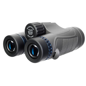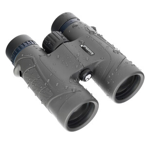 O vidro BaK-4, com o qual os elementos óticos são fabricados, é totalmente revestido várias vezes, para que a imagem seja nítida e clara em todo o campo de visão – mesmo ao entardecer, é possível ver facilmente todos os pequenos detalhes. A ampliação é de 10x, o campo de visão é amplo o suficiente para observação panorâmica e, por isso, os binóculos são versáteis. A roda de focagem está localizada no centro, para que possa alcançá-la facilmente com uma mão. A ocular direita possui um anel de ajuste de dioptria, que permite ajustar a nitidez da imagem com mais precisão. Com viseiras para oculares giratórias.