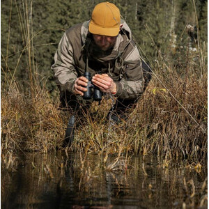 Os binóculos Minox X-TOUR 8x42 são os binóculos versáteis e luminosos da série, ideais para caça ao crepúsculo, observação na floresta e observação exigente da natureza. As lentes de 42 mm e a grande pupila de saída de 5,25 mm proporcionam uma imagem nítida e estável, mesmo com pouca luz – uma grande vantagem nos primeiros e últimos minutos do dia de caça. O amplo campo de visão de 129 m a 1000 m facilita a deteção rápida dos movimentos dos animais, enquanto as lentes ED garantem uma elevada nitidez e uma reprodução precisa das cores. A robusta estrutura em magnésio, o enchimento com azoto e a impermeabilidade IPX7 tornam estes binóculos absolutamente resistentes às condições meteorológicas e ao uso em terrenos acidentados. Com até 685 g, mantém-se confortável de manusear para um binóculo de caça de 42 mm.