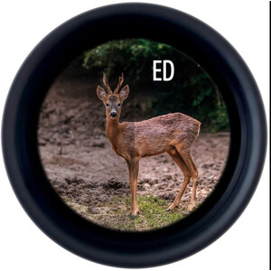 - Grande pupila de saída de 5,25 mm e distância ocular de 17,9 mm – muito confortável, mesmo com óculos