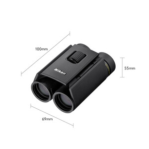 O modelo Sportstar EX II 8x25 oferece um amplo campo de visão aparente de 60,3°, o que facilita o acompanhamento de objetos em movimento. O modelo 10x25 oferece um campo de visão aparente de 59,2°.