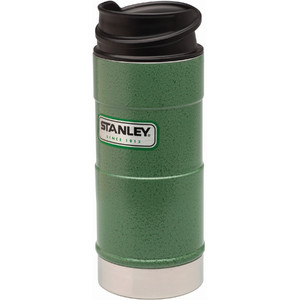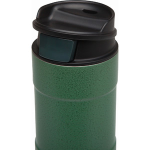 Este copo térmico com parede dupla e isolamento a vácuo em aço inoxidável 18/8 faz parte da popular série Stanley Classic. O copo impressiona com um design atraente em verde martelado. O botão que pode ser pressionado com o dedo indicador permite beber rapidamente com uma só mão durante caminhadas, passeios de bicicleta ou no trabalho. A isolação a vácuo mantém as suas bebidas quentes ou frias durante muitas horas. A tampa removível pode ser facilmente lavada na máquina de lavar louça. Sem BPA!