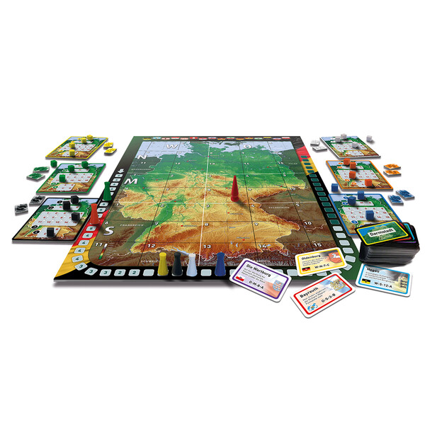 Cada jogador pega um dos cartões de localização disponíveis e tenta localizar o seu local nos quadrantes do tabuleiro com a maior precisão possível. As regras do jogo são fáceis de entender, e a busca por cidades e áreas naturais em muitos países pode começar. Quanto mais precisa for a resposta, mais pontos ganha. Cada jogador pode arriscar mais ou menos para ganhar pontos. E não tenha medo dos sabichões, pois eles às vezes arriscam demais, erram e não ganham nenhum ponto!