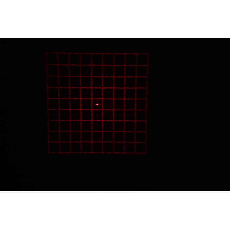 Eine Lochmaske mit einem 1mm Zentralkreis ist schon im Lieferumfang enthalten. Der Laserstrahl wird dadurch noch enger begrenzt. Wenn der Spiegel den Strahl zurückwirft, sehen Sie einen zentralen Punkt, um den sich konzentrische Kreise bilden.