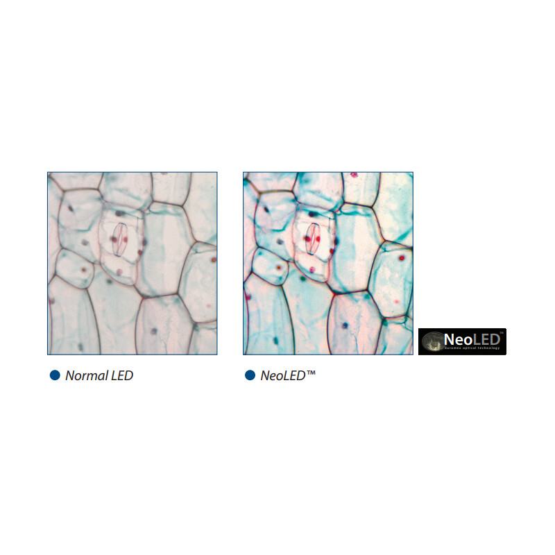 - Iluminação e fonte de alimentação: Iluminação Köhler regulável com NeoLED™ interno de 3 W, fonte de alimentação de 85 V-240 V. A iluminação Köhler nos modelos com sistemas corrigidos IOS Plan infinito oferece um alto contraste e a máxima resolução óptica possível. (Também disponível como opção para outros modelos)
