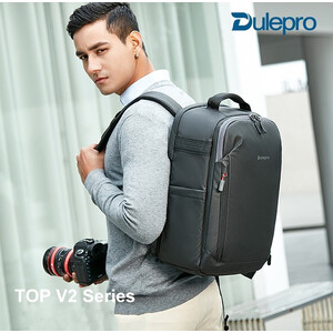 A mochila para câmera da série Top V2 é uma versão aprimorada da primeira geração da série Top. Toda a mochila é feita de material ainda mais resistente à água e ao desgaste, e o bolso frontal possui um design expansível para aumentar o espaço de armazenamento, permitindo que câmeras e estabilizadores sejam facilmente acomodados. A mochila Top V2 está disponível em quatro tamanhos.