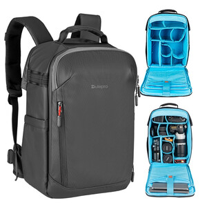 Esta mochila fotográfica oferece espaço para 1 câmara DSLR ou do sistema com punho de bateria e objetivo 70-200 mm acoplado, corpo de substituição, 3 lentes de tamanho médio, flash, um computador portátil de até 16", tablet de até 11" e acessórios. Em alternativa, também tem espaço para uma câmera DSLR com punho de bateria e objetivo e um drone compacto e dobrável, incluindo controlador e bateria, 2-3 objetivos e flash, espaço de armazenamento suficiente