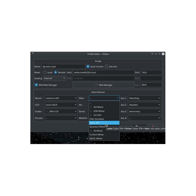 - Multiplataforma: O controle remoto do StellarMate é compatível com qualquer computador: o Kstars / Ekos poder ser executado no Windows, MacOS e Linux. Além disso, o aplicativo StellarMate e KStars Lite está disponível para dispositivos Android e iOS.