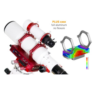 A estrutura do EAGLE é muito estável. É resistente o suficiente para suportar até mesmo um telescópio menor (até 8 kg) em paralelo. Assim, pode instalar o EAGLE mesmo sob o seu telescópio principal! Simulações FEM precisas permitiram-nos otimizar a estrutura do EAGLE de forma que, com uma carga útil de 10 kg, ocorra apenas uma deformação máxima de 0,002 mm. A estrutura está equipada com vários orifícios roscados M5 e M6, para que os acessórios PLUS (braçadeiras de tubo, trilhos de prisma e grampos) possam ser fixados com pelo menos duas superfícies de contacto. Isso garante a rigidez e a estabilidade de todo o sistema. Assim, é possível, por exemplo, instalar o EAGLE entre braçadeiras de tubo PLUS e braçadeiras de guia. A sua configuração torna-se mais transportável, pode ser montada de forma mais fácil e rápida, sem comprometer a estabilidade.