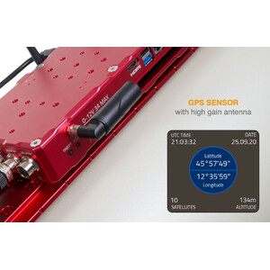 Para operar o seu telescópio com a máxima precisão, é muito importante conhecer exatamente a localização geográfica e a hora local. Graças ao sensor GPS integrado, o EAGLE agora pode reconhecer automaticamente a localização geográfica, a altitude, bem como a data e a hora do telescópio. A antena de alto ganho montada externamente permite que o EAGLE se conecte rápida e facilmente ao sistema GPS, mesmo que apenas uma pequena área do céu esteja visível ou o telescópio esteja em uma cúpula de observatório. O EAGLE sincroniza automaticamente todas as configurações do Windows com o GPS para que o seu software esteja pronto para uso.