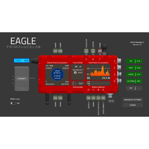 Substitua o seu computador portátil ou desktop normal pelo EAGLE, poupando muito tempo para poder observar por mais tempo! Como o EAGLE5 é um computador Windows 11, pode continuar a utilizar todos os seus instrumentos e software, mas desfrutando de muitas vantagens que não tem num computador normal. Os engenheiros da PrimaLuceLabs desenvolveram o EAGLE5 como uma solução "tudo em um" para qualquer telescópio. Quando todos os cabos de dados e de alimentação estão conectados ao EAGLE, o telescópio pode se mover livremente e oferece um gerenciamento de cabos ideal, sem risco de tensão nos cabos. Tudo o que precisa é de uma fonte de alimentação por bateria ou fonte de alimentação.