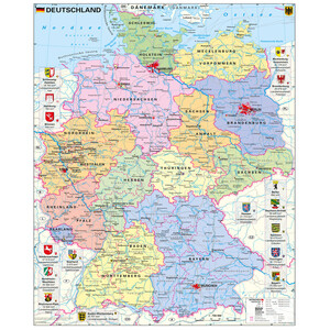 > Stiefel Mapa Deutschland politisch mit Wappen (97 x 119 cm)