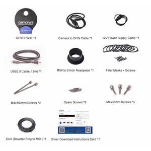 As rodas de filtro QHY-CFW3 estão disponíveis em três tamanhos: pequeno (CFW3S), médio (CFW3M) e grande (CFW3L).