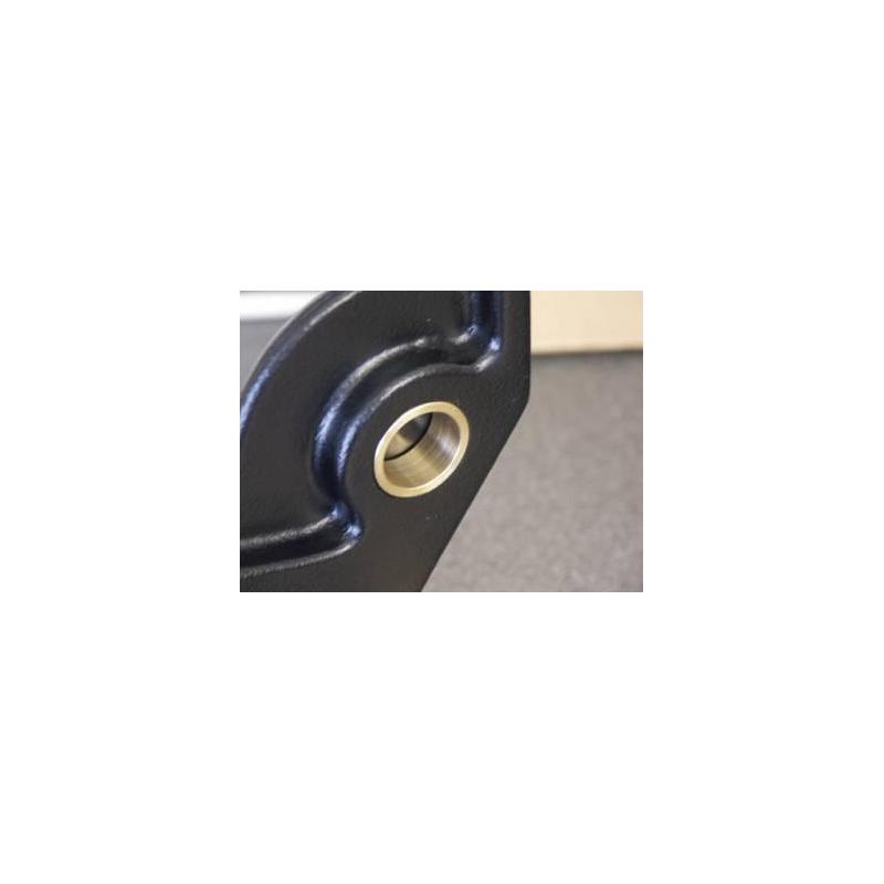 A gaiola aberta de fábrica da cunha tem a desvantagem de que, ao travar a placa de inclinação, ocorre novamente um desvio do ajuste. O grande jogo entre a bochecha e a placa de inclinação é o problema. Também aqui entramos em ação, eliminamos o jogo e colocamos 3 eixos de alumínio anodizado entre as bochechas. Isto significa que a gaiola antes aberta agora se torna fechada e o tempo de oscilação é significativamente reduzido.