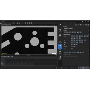 Medições interativas avançadas, incluindo reconhecimento automático de bordas e linhas auxiliares (linha arbitrária, linha vertical, linha horizontal, distância entre círculos, polilinha, polilinha à mão livre, régua linear, linha perpendicular, várias linhas perpendiculares, várias linhas paralelas, espessura de estreitamento, polígono à mão livre, polígono fechado, polígono interpolado, varinha mágica, retângulo, retângulo rodado, círculo de 2 pontos, círculo de 3 pontos, círculo com deteção de bordas, círculo multiponto, elipse rodada, ângulo de 3 pontos, ângulo de 4 pontos, régua angular, coordenadas de pontos, centro, número de pontos)