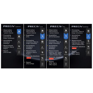 A versão desktop do software PRECiV destina-se a clientes que desejam processar os seus dados independentemente do microscópio com todas as funções de medição e análise disponíveis, mas sem o controlo da câmara e da captura de imagens.