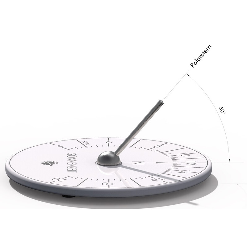 Diese Sonnenuhr wird für einen Breitengrad Ihrer Wahl individuell hergestellt. Bitte teilen Sie uns daher bei der Bestellung mit, welchen Breitengrad Sie wünschen.