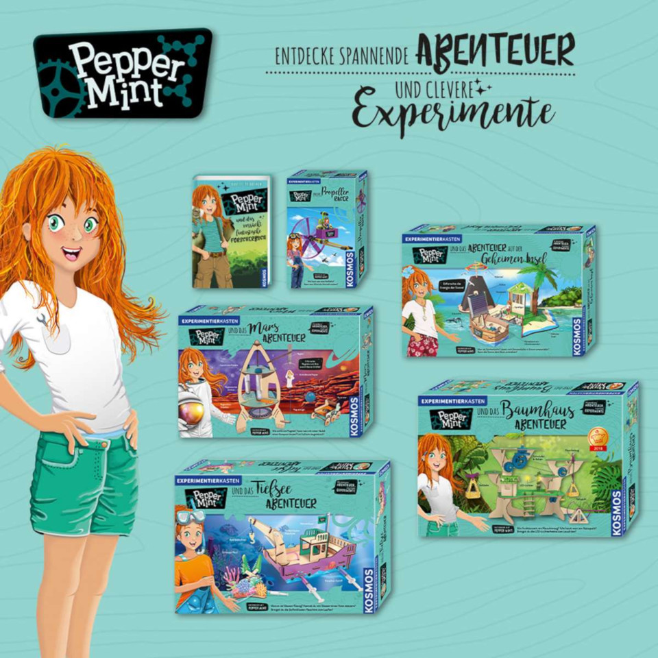 Pepper Mint verbindet in den neuen Experimentierkästen spannende Abenteuergeschichten mit den sogenannten MINT-Fächern (Mathematik, Informatik, Naturwissenschaften, Technik). Dabei wird ein neuer, moderner didaktischer Ansatz angewendet, um auch junge Forscherinnen anzusprechen.