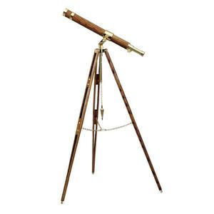 Esta reprodução artesanal de um telescópio do século XVIII combina elegância e excelente qualidade ótica. O tubo de latão pode ser revestido com madeiras de alta qualidade (carvalho, teca, mogno) ou couro. Em combinação com um dos tripés de madeira de alta qualidade feitos à mão, é o centro das atenções em qualquer sala.