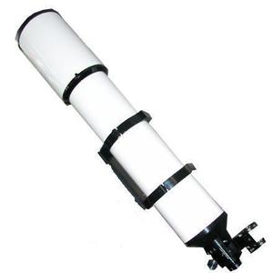 A tampa anti-orvalho e o tubo principal são fabricados em Kruppax 50, todas as outras peças são fabricadas em alumínio de alta qualidade, torneadas ou fresadas em CNC. O tubo e a tampa anti-orvalho são pintados em branco creme RAL 9001, as peças de alumínio são pintadas em preto mate. A tampa anti-orvalho é aparafusada e deslizante para facilitar o transporte e termina na parte frontal com uma aba interna que impede eficazmente a formação de orvalho na ótica durante longos períodos de tempo.
