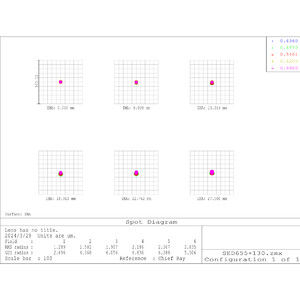 Os sensores grandes não perdoam. O 130/650 Quintuplet foi concebido precisamente para isso. A correção ótica atinge uma diagonal do sensor de 55 mm. Isto significa: estrelas pontuais, mesmo nos cantos. Sem bordas difusas. Sem perda na borda da imagem. A construção quintuplet com três elementos ED faz a diferença. Os triplet clássicos atingem aqui os seus limites. Esta ótica de cinco lentes corrige aberrações esféricas, erros de cor e curvatura de campo de forma significativamente melhor. Obtém um campo de imagem grande e utilizável com alto contraste.