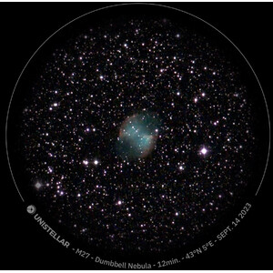 A Deep Dark Technology é um modelo ultramoderno desenvolvido pela Unistellar para filtrar automaticamente o ruído e a poluição luminosa. Mesmo em áreas urbanas particularmente iluminadas, o algoritmo ultrarrápido de redução de ruído da Deep Dark Technology limpa as imagens do telescópio e garante um fundo preto tão escuro quanto as profundezas do espaço. Assim, a Nebulosa Anelar M57 apresenta os seus tons brilhantes de azul e vermelho, e a Galáxia Cigarro, a 11,4 milhões de anos-luz de distância, impressiona com as formas e detalhes pitorescos que lhe dão o nome.