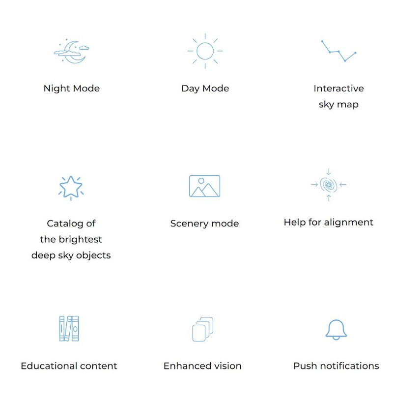 Basta colocar o seu smartphone na ocular da Hestia, apontar o instrumento para o objeto celeste de sua escolha, deixar-se guiar pela aplicação intuitiva e descobrir um mundo totalmente novo de exploração. A Hestia foi concebida para todos os objetivos e momentos. Desfrute dos tesouros do céu quando e onde quiser!