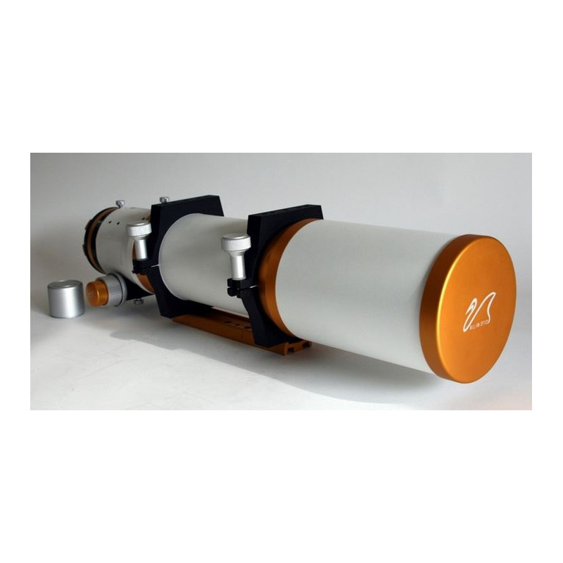 O telescópio está equipado com um objetiva apocromática de três lentes. Para obter uma correção cromática da maior qualidade possível até a área das bordas do campo visual, faz-se uso de uma lente de vidro de fluorita. Isto é visível não somente em objetos críticos, mas antes de tudo, em trabalhos fotográficos com sistemas de câmeras digitais a diferença é muito clara. Todas as lentes são montadas com um intervalo de ar na moldura estável e recebem um revestimento de alta qualidade "STM", para um contraste ainda melhor. A parede interna do tubo é além disso provida de limitadores elaborados de luz dispersa e recebe revestimento fosco, assim praticamente não há a possibilidade de reflexos internos. Este telescópio pode ser usado de forma ideal como objetiva astrofotográfica em conjunto com um corretor de campo de imagem. 6 limitadores de luz dispersa se encarregam muito bem de suprimir reflexões e assim garantem o mais alto contraste.